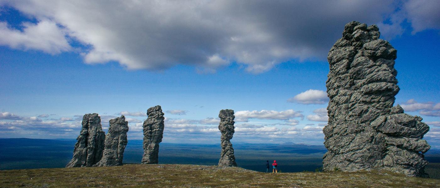 نام این هفت ستون غول پیکر ،منپاپانر است که به معنی کوه کوچک خدایان می باشدو به “هفت مرد قوی” هم شهرت دارند.زمان ایجاد این ستون های سنگی دقیقا معلوم نیست وتنها چیزی که دانشمندان از آن مطمئن هستند طبیعی بودن آن میباشد . سن برآورد شده برای این ستون ها ۲۰۰ تا ۳۰۰ میلیون سال میباشد و ارتفاع بلندترین ستون ۴۲ متر است. این ستون های سنگی در شمال کوه های اورال قراردارند و دارای ارتفاعی به اندازه سی دو تا چهل متر هستند که به عنوان هفت دو قلوی غول پیکر در بین مردم مشهور میباشند.